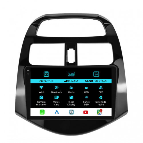 Navigatie Dedicata Chevrolet Spark (2009-2015), QuadCore, 9Inch, 4Gb Ram, 64Gb Stocare, Carplay