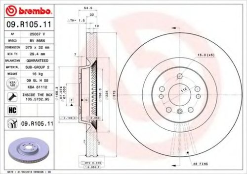 Disc frana MERCEDES R-CLASS (W251, V251) (2006 - 2016) BREMBO 09.R105.11 piesa NOUA